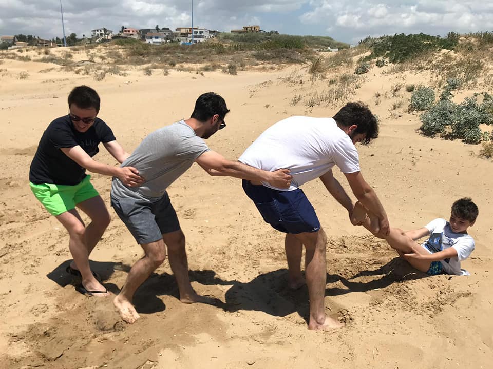 Chers cousins, mes amis d’enfance, mes compagnons de vacances…. Je me souviens des journées à la plage, moi, la seule fille…. Obligée de jouer au foot, au courses de billes, je me souviens des pistes construites à la forme de mes fesses, c’était moi qui ramassait le paquet de sable dans la culotte, la plus petite, la ninni…. « Dai gnolona, vieni a giocare con noi » Je me souviens… « Panini al prosciutto e succo di frutta » attendre 3 heures avant d’aller se baigner (ça durait des plombes, a cramer sous le soleil) puis la libération… Tutti al mareeee. Ils aimaient m’embêter, mais plus tard on se rend compte que c’est de l’amour déguisé, qu’ils m’ont toujours prise avec eux, pour me protéger, que ces liens de sang, sont fort et ne se cassent jamais. Même plus tard, devenus grands, pour faire les 400 coups, partir en virée, matelas et camionnette, discothèque toute la nuit, se laver dans la mer, déjeuner capuccino et brioche. Les apéro Negroni al bar, les repas de Pâques avec les autres cousins….