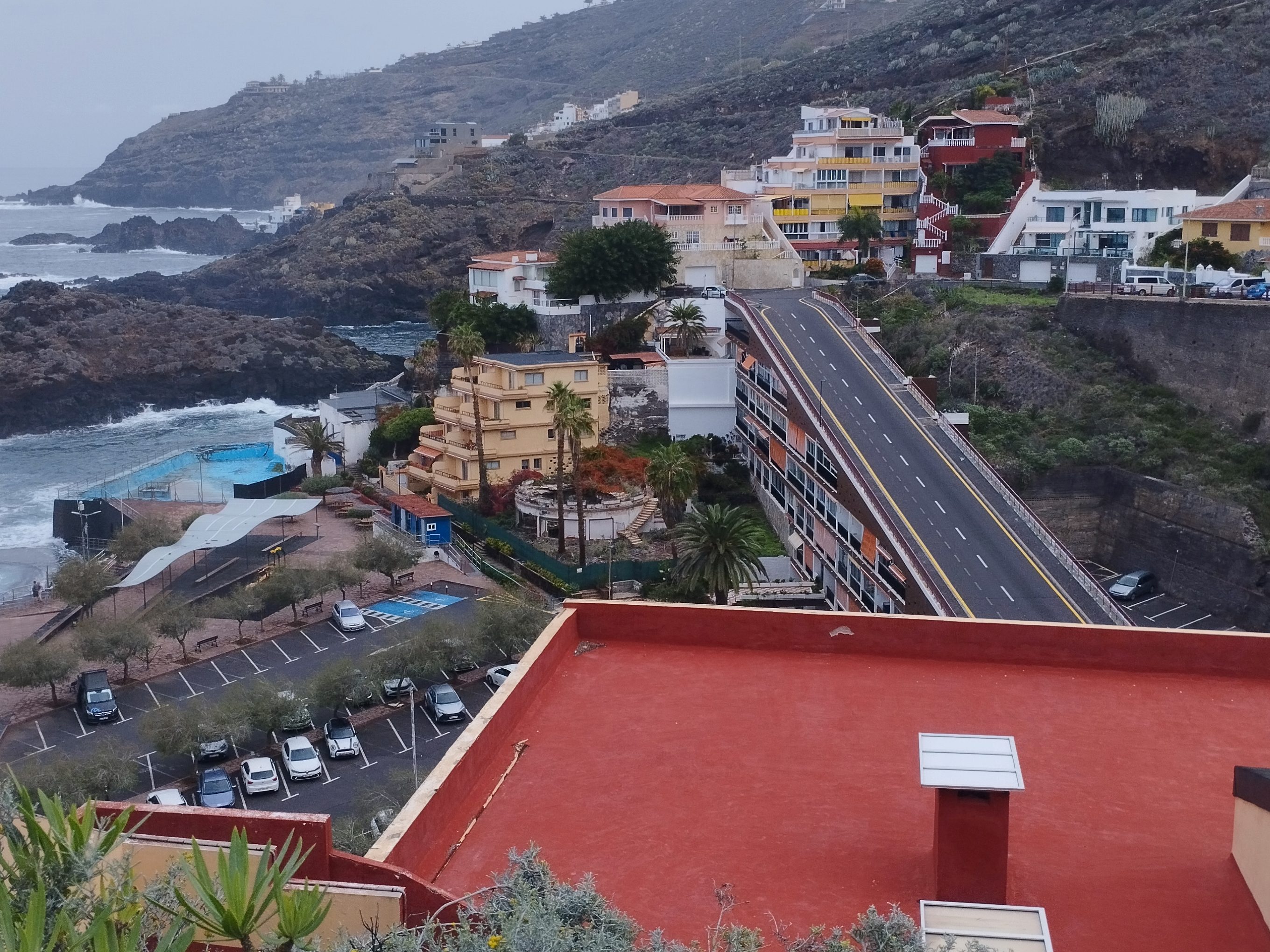 Pour avoir une meilleure idée de l’environnement, nous avons décidé de nous déplacer vers le nord, un peu de végétation ne ferait pas de mal à nos petits yeux secs… Quelques recherches airbnb, on a troqué une montagne avec « trou au fond de la falaise ». Une descente en épingle, sur la corniche (fallait pas avoir fait un gueuleton juste avant) !! Le pire? Il y a un bus qui fait des navettes, si déjà en voiture c’est sport, la première fois qu’on a pris le bus…. Omg!! Il frôlait les rochers et les voitures devaient passer en contre sens dans les virages. Je veux dire que les virages ont pile la longueur du bus. (voir vidéo) Par contre des vues à couper le souffle, des piscines naturelles (légèrement bétonnées pour les guiri qui se baignent toute l’année).